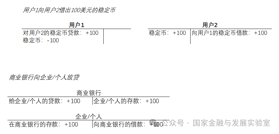 稳定币发行既不涉及中央银行资产负债表的扩张,也不涉及商业银行放贷,因此没有新的中央银行货币或商业银行存款货币被创造出来,而是在由中央银行和商业银行组成的二级银行账户体系中,已经存在的货币通过区块链被代币化,基于区块链出现了一种新的货币流通方式。