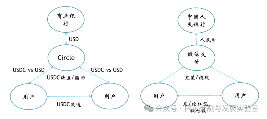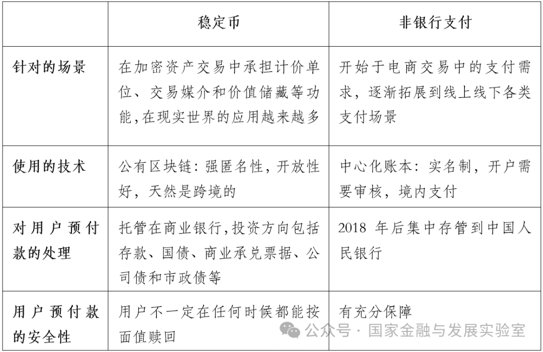 图9对比了稳定币与中国非银行支付的架构。尽管它们使用了截然不同的技术,在架构上是类似的: