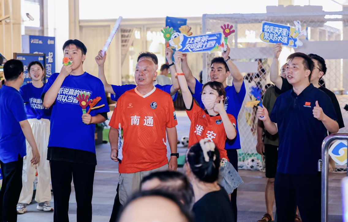 作为江苏省全民参与的草根足球盛事,由江苏银行冠名的“苏超”联赛自开赛以来便凭借独特的地域文化基因与纯粹的竞技魅力圈粉无数。不同于职业联赛的专业壁垒,这里汇聚了教师、快递员、程序员、大学生等多元身份的业余球员,他们在绿茵场上挥洒的每一滴汗水,都承载着江苏十三市的烟火气与文化魂——从淮安的运河风情到常州的龙城底蕴,从街头巷尾的足球记忆到当代青年的运动热情,“苏超”早已超越单纯的体育赛事,成为全省人民共享的文化名片。此次江苏银行上海分行选择在连接沪宁产业带的枢纽地标环球港举办“我们一起看苏超”活动,正是看中了其“聚人气、促交流”的天然优势,以城市地标的辐射力,让更多市民加入这场全民足球狂欢。