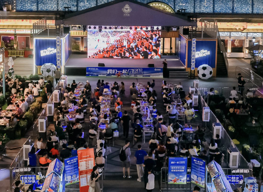 7月6日晚,上海月星环球港5楼环球广场化身足球热情的海洋——江苏银行上海分行在此精心策划了“我们一起看苏超”主题活动,通过高清大屏同步转播,带领数百名沪上球迷沉浸式体验2025江苏银行江苏省城市足球联赛(以下简称“苏超”)第六轮淮安与常州的焦点对决。
