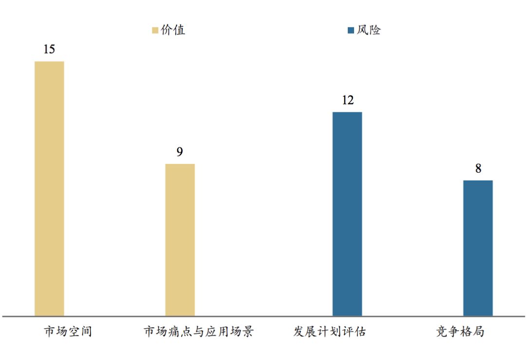 在价值维度,对项目的市场空间进行测算,考察项目对应的市场痛点和应用场景。
