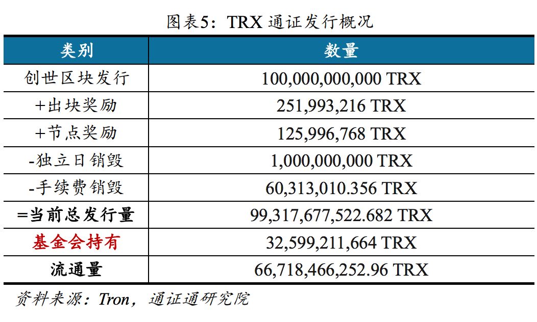 TRX通证的作用包括投票、部署智能合约等。TRX转账无需用户支付手续费,根据消耗区块链网络资源的多少销毁相应数量的TRX。