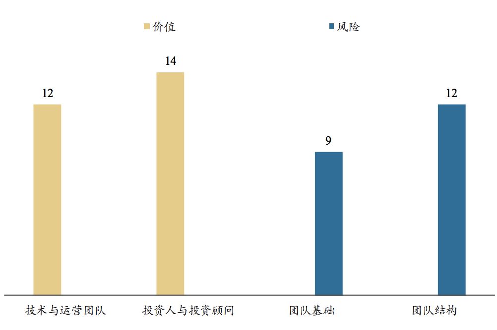 在价值维度,对团队的技术和运营实力进行评估,这里定义的项目团队还包括项目方的外部资源,具体来讲有项目顾问、外部投资机构等,我们将对外部资源进行合理的评估。
