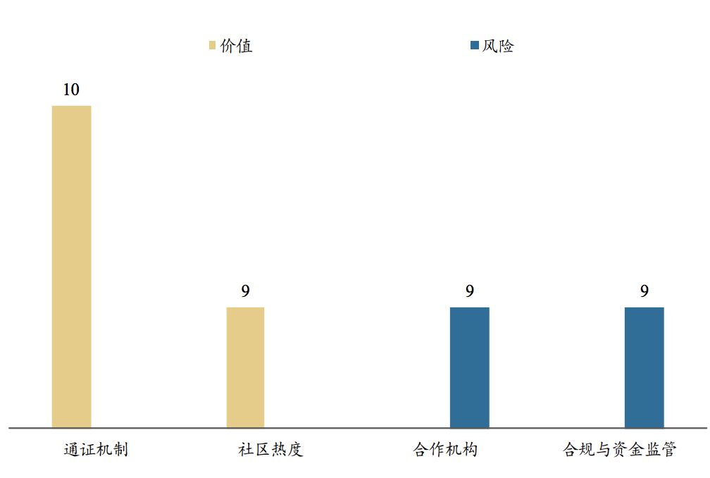 在风险维度,比较项目与同类项目通证的市值规模,判断项目通证的估值水平,比较项目与同类项目通证的的价格波动幅度,直接判断项目通证的风险水平。