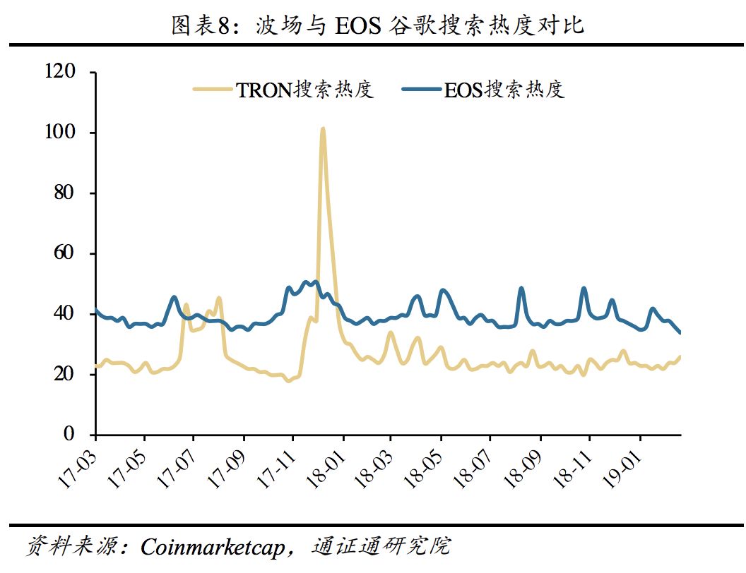 但波场的Reddit关注数仅有7万,与EOS接近,低于ETH的43万。波场的Reddit上投资者的讨论互动较少。