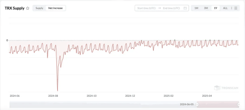 根据模型测算,此次参数调整将使TRX年度通缩率由0.85%跃升至1.29%,这种代币流通量收缩效应在市场需求稳定或扩张背景下,将形成单位价值的正向驱动。通缩本质是通过减少市场供应量,在供需关系层面构建价值提升的底层逻辑。