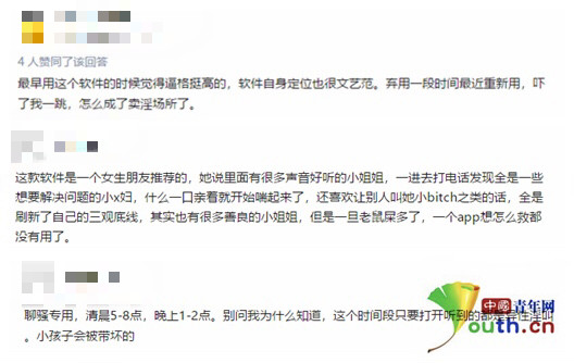 有网友感叹道,“最早使用这个软件时觉得逼格挺高的,弃用一段时间重新使用,怎么成了卖淫场所了。”还有网友表示,刷新了自己的三观底线,“其实也有很多善良的小姐姐,但是一旦老鼠屎多了,一个APP想怎么救都没有用了。”另有网友直言,称其是“聊骚专用”。
