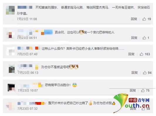 一直以来,围绕孙宇晨的争议从未停止。无论是与搜狗CEO王小川互怼,还是隔空回应王思聪嘲讽,他的每一次争议似乎都印证着此前的言论:“我这人真的无法忍受寂寞。我衡量一件事是否要做,热不热闹很重要,一定要有人搭理我。哪怕是骂我呢?”