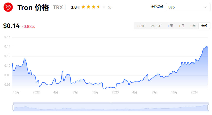 TRX波场币会的可能性比较小,根据官方数据记载,当前TRX波场币的价格为0.134美元,低于历史最高价0.3003美元,但高于发行价格0.0015美元,当前投资回报非常乐观为+8880.00%,市值更是高达120.86亿美元,总的来看当前TRX波场币发展状况还比较乐观,的可能性比较小。